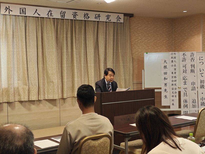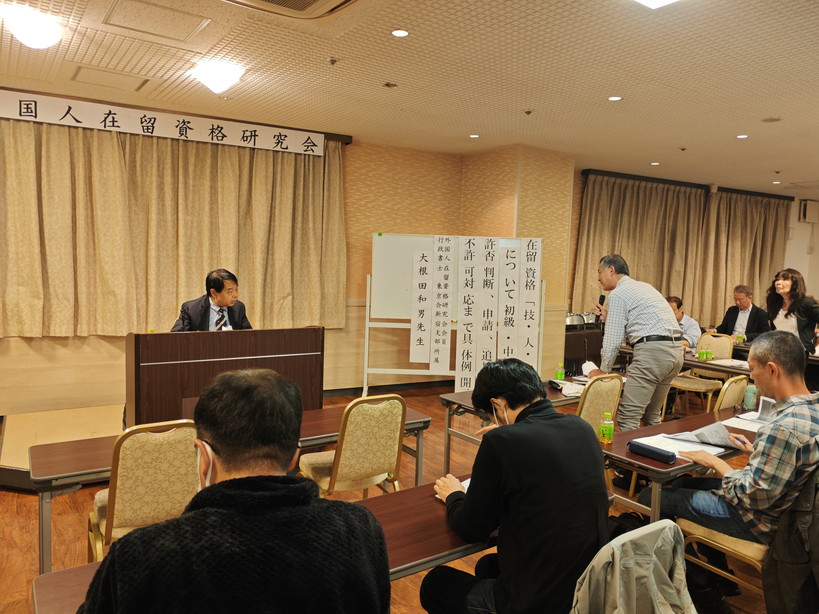 10月25日(土)午後1時半より今年2回目の研修が新宿サンパーク三平本館7階ホールで開催されました。講師は、外国人在留資格研究会所属で東京会新宿支部の大根田和男先生。大根田先生は、過去にも何度かご登壇いただいていますが、今回も資料豊富でわかりやすい且つ丁寧な解説をしていただきました。